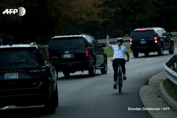 In late October a DC woman became a liberal online sensation after she was pictured flipping President Trump the bird while riding a bicycle on the road to Trump’s Northern Virginia golf club.