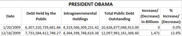 President Obama during the same time period in his first term also increased the US Debt. However, where President Trump increased the Debt to date by 2.7% , Obama increased the debt by 13.8% or 10% more than President Trump. President Obama inherited a US Debt amount of $10.6 trillion on his inauguration and increased it by nearly $1.5 trillion during his first eleven months in office.