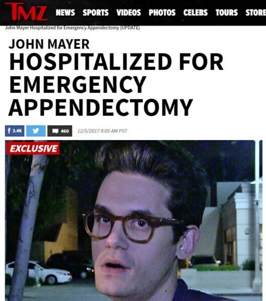 Mayer was rushed to the hospital for an emergency appendectomy last week — a week after his anti-Trump tweet.
