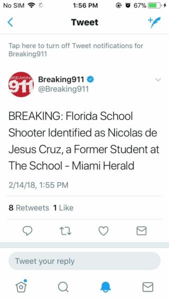 Note: there is some discrepancy as to whether the name of the shooter is “Nicolas Cruz” or “Nicolas de Jesus Cruz” as has been reported by close to 100 other new media companies (we have the screenshots). Such being said: it is becoming more clear that this individual was NOT, in fact, an actual Trump supporter, as is being reported by the media as the result of the image that shows Cruz wearing a MAGA hat.