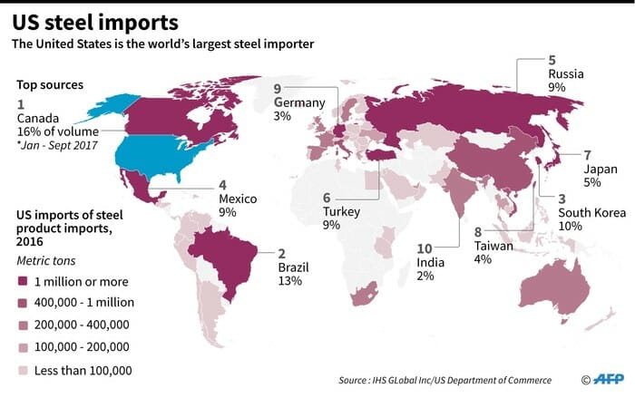 The US is currently the world’s largest steel importer.