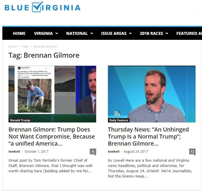 Brennan Gilmore was also Chief of Staff for liberal Rep. Tom Perrielo.