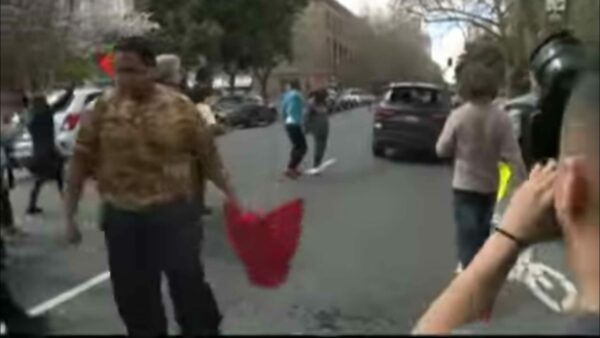 The Sacramento Bee posted video of protesters blocking and mocking another driver.