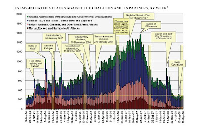 The Bush Surge was already showing amazing results last year at this time. Enemy initiated attacks were way down. US fatalities were way down. Al-Qaeda in Iraq was defeated.