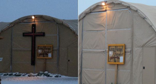 But the Obama Administration banned the Christian cross from the worship tent. It was too offensive.