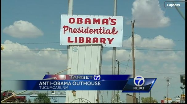 An outhouse sign that says “Obama’s Presidential Library” has Liberal media in a tizzy. It’s amazing how the media claims they had such a hard time finding someone who liked the “politically charged” controversial sign. I’m sure the difficulty was more prevalent amongst the camera footage editors.