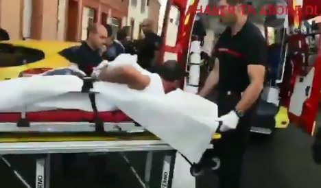 The Islamist was arrested and carted away on a stretcher.